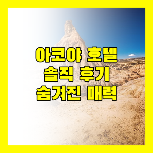 이 글에서는 아코야 호텔의 솔직한 후기를 낱낱이 파헤쳐 봅니다. 장점은 물론, 단점까지 꼼꼼하게 분석하여 여러분의 선택에 도움을 드리고자 합니다.